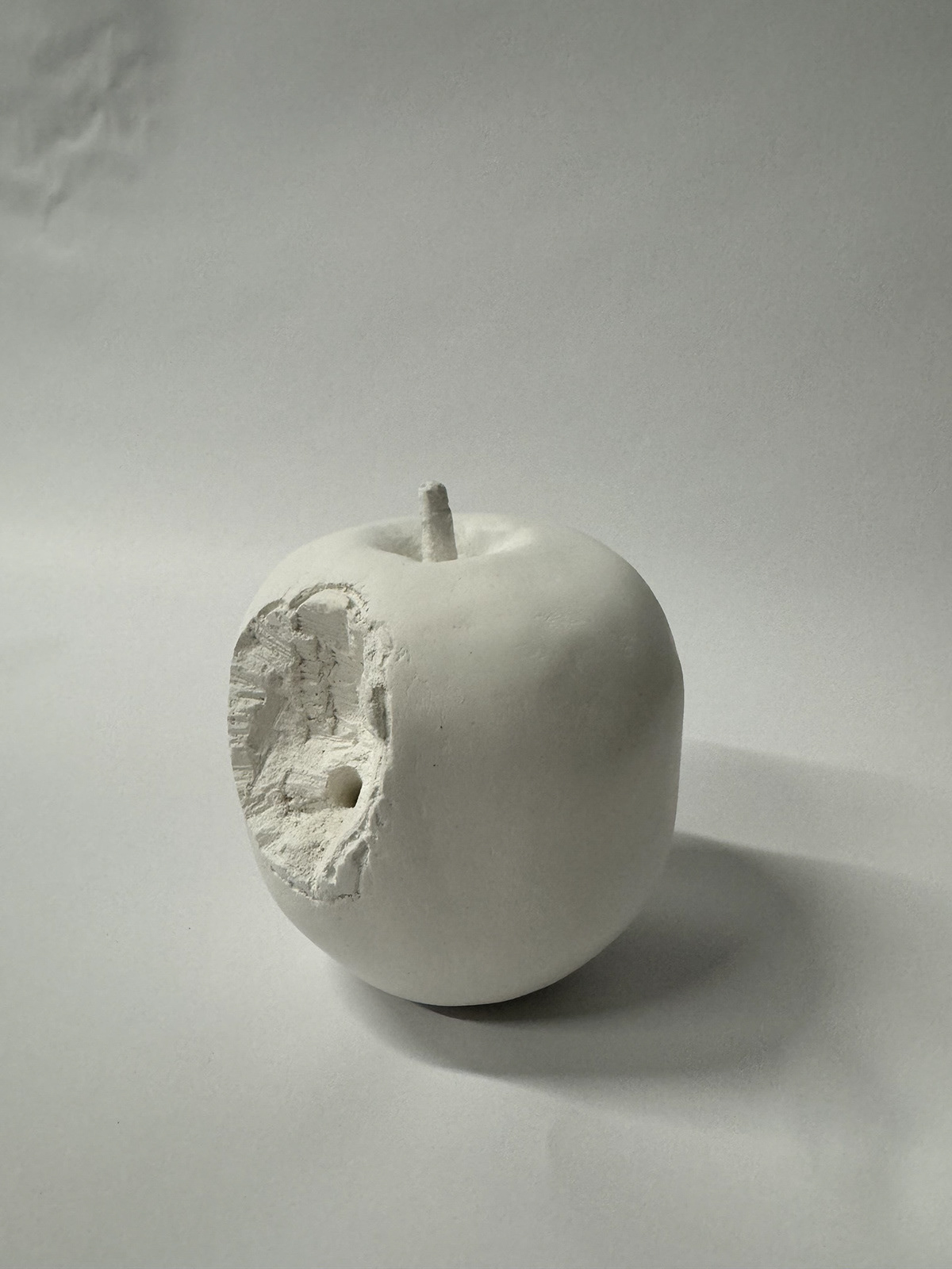 This sculpture represents that not everything as it looks. if we take this apple seems perfectly healthy but inside contains worm. This piece is meant to capture the feeling of discontent we feel after we encounter something completely unexpected.