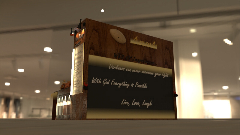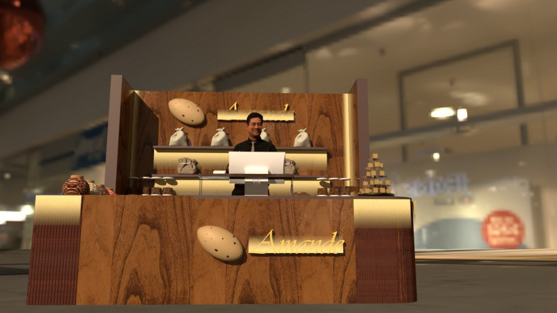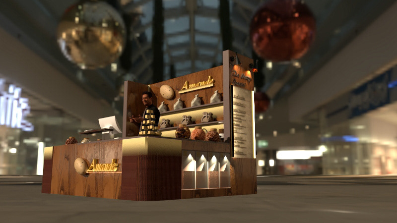 This project showcases kiosk that sells artisan nuts, as well as warm nuts. This project has all-encompassing design that uses visual as well as olfactory senses for successful business and pleased customers. The aesthetics are inspired by the grain of walnut wood.